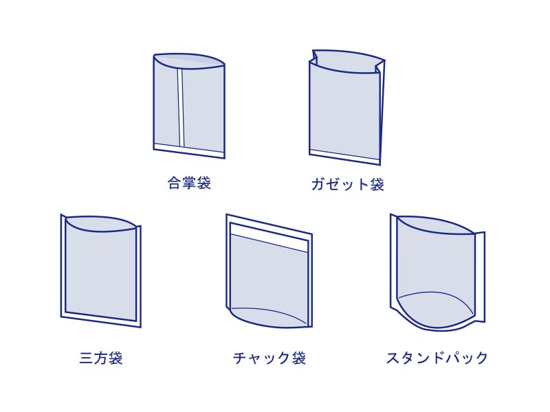 製袋(せいたい)加工とは、スリット後のフィルムを、使用に即して様々な袋状に加工することです。