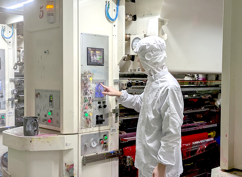 8:40 | 業務開始 ・作業開始前に担当する機械の進捗を確認 ・これから生産する製品の仕様、規格を確認 ・必要資材(フィルム、版、インク)の確認と準備 ・帳票類、次工程への申し送り事項を記入 ・パソコンでの日報入力作業 ・印刷機械の操作 ・フィルムセット ・インクの確認、調合作成 ・欠点検査機の設定、確認作業 ・印刷サンプルのチェック ・印刷物の色を確認 ・欠点発生時の修正作業 ・製品切り替え時の版交換、清掃作業 |