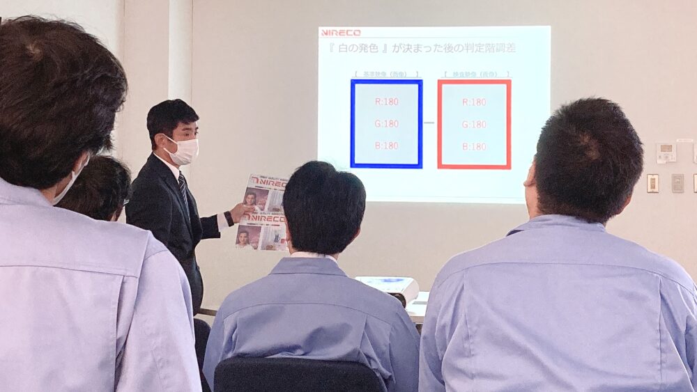 10/30 新潟工場に、株式会社ニレコ様をお呼びして「印刷品質検査装置について」の講習会を行ないました。